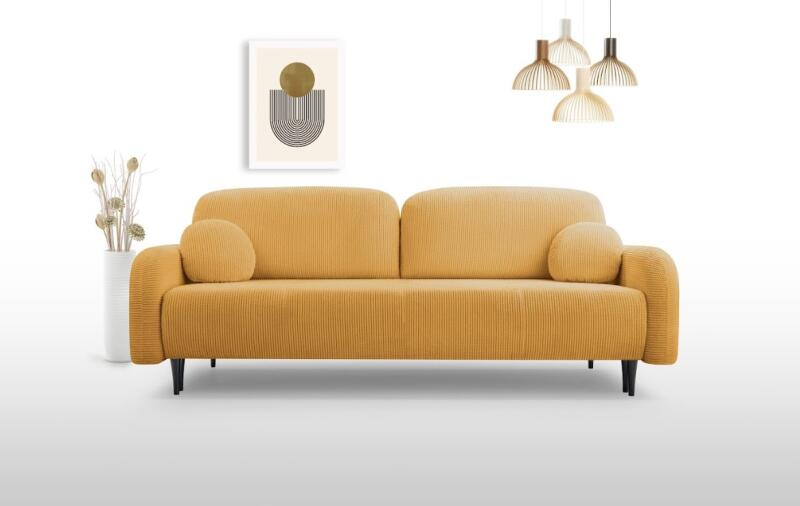 CLOUD kanapé | mustár A stílusos, mustársárga CLOUD dizájner kanapé első pillantásra lenyűgözi a vendégeket. A CLOUD kanapé stílusos kialakítása energiát visz otthonába, tökéletes a kikapcsolódáshoz. Nagy előnye, hogy akár két szintre is kinyitható , aminek köszönhetően akár 140 x 200 cm-es hálórészt is kaphat. Alakítson ki vonzó teret nappalijából a kényelmes CLOUD kanapéval. faipari forgácslap furnér szövet A kanapé szerkezete fából, forgácslapból és rétegelt lemezből készült. Elma szövettel kárpitozták, amely kellemes tapintású. A kanapé impregnálható , vagy szükség esetén tisztítható a kínálatunkban szereplő tisztítószerrel . szélesség: 230 cm magasság: 95 cm mélység: 102 cm ülésmagasság: 45 cm ülésmélység: 57 cm kartámasz magassága: 63 cm hálórész: 140 x 200 cm szín: mustársárga (Elma 15)